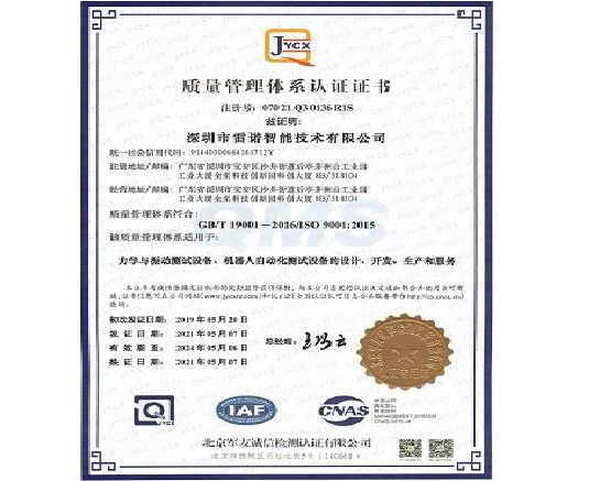 公司通過《質(zhì)量管理體系認(rèn)證ISO 9001B:2015》。