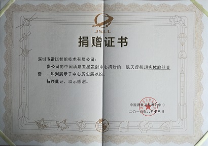 捐贈(zèng)證書-酒泉衛(wèi)星發(fā)射中心
